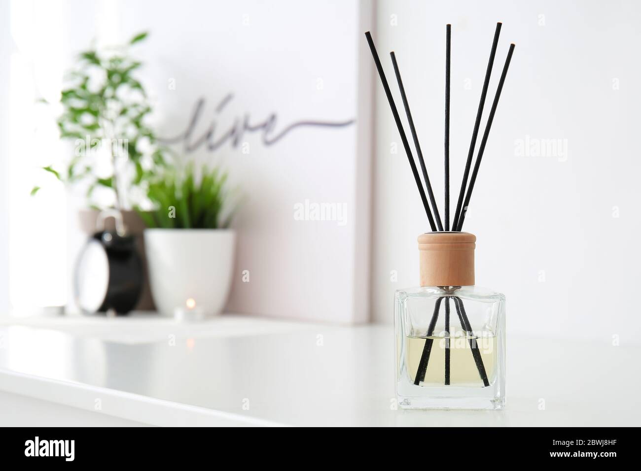 Reed diffuser on table in bedroom Stock Photo - Alamy
