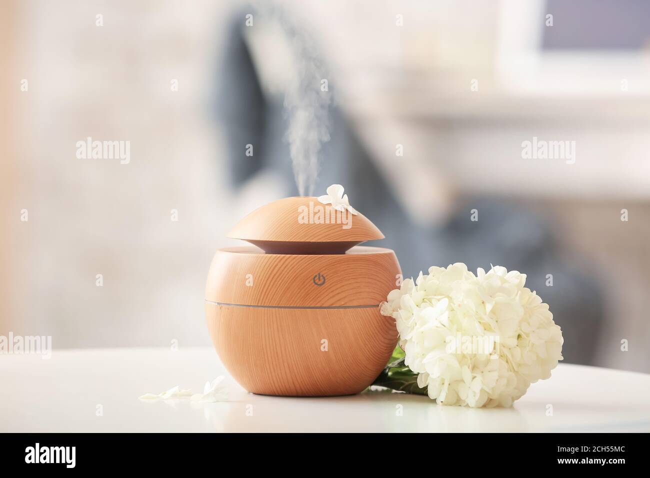 Essential oil diffuser on table in room Stock Photo - Alamy