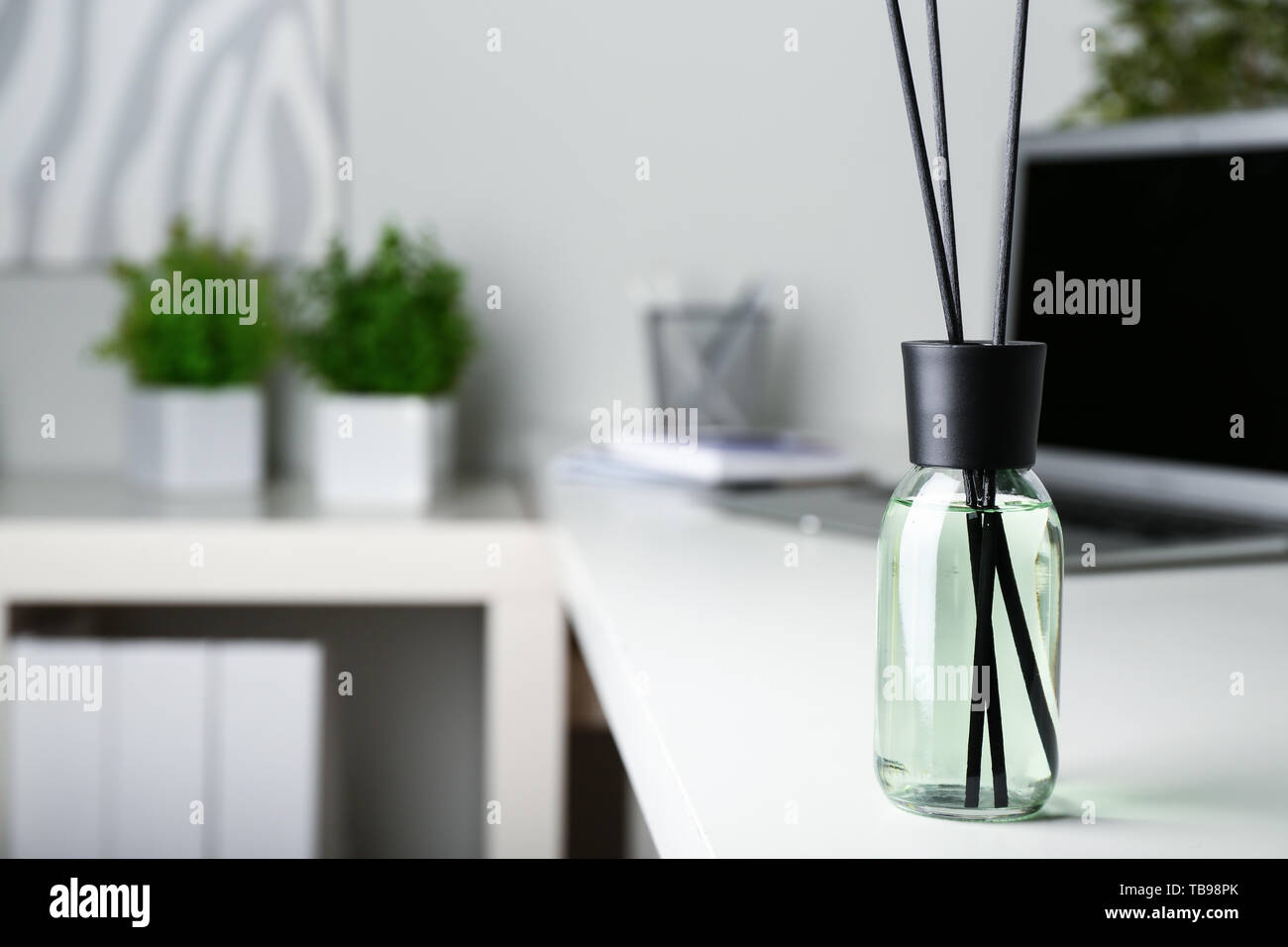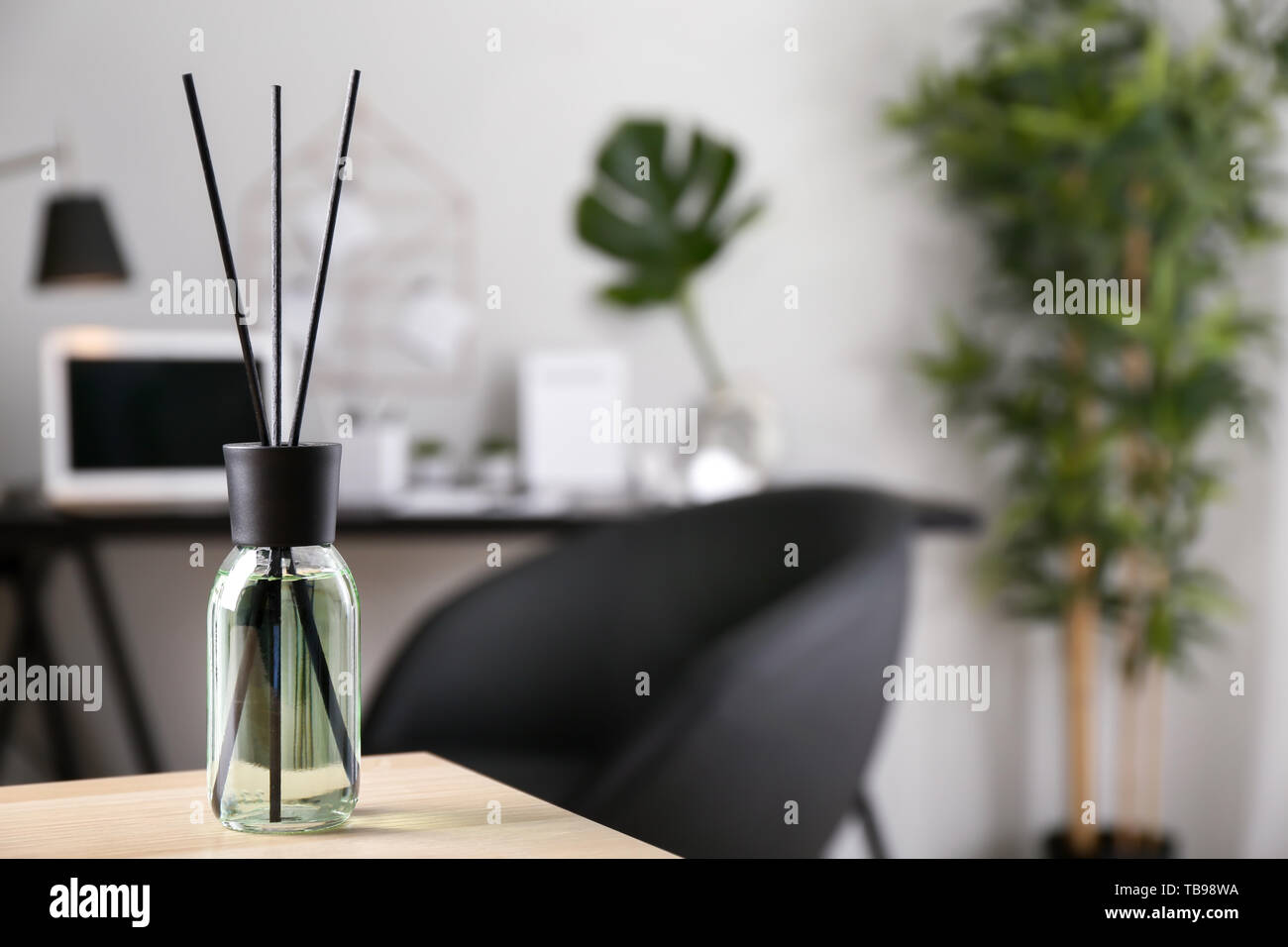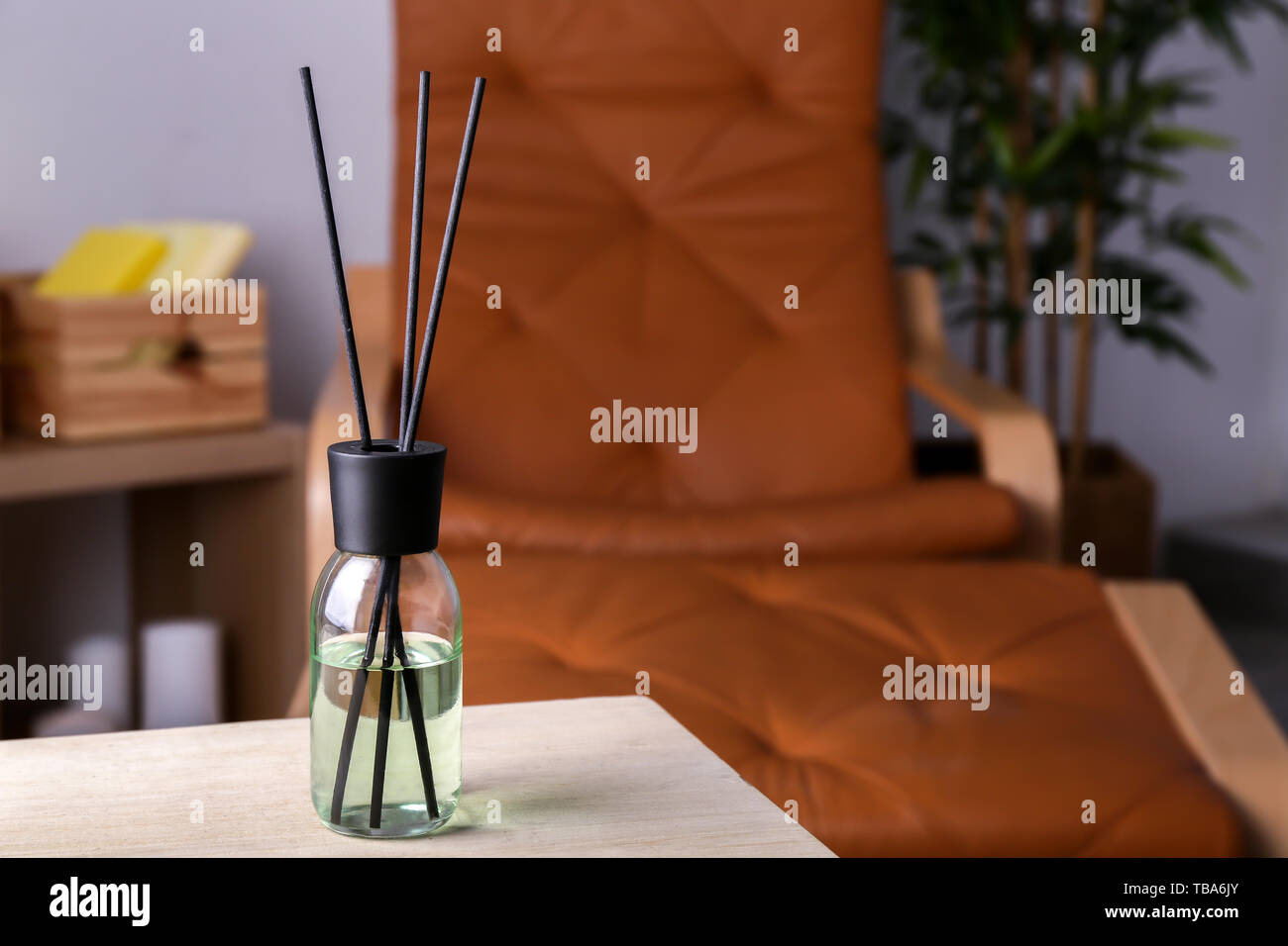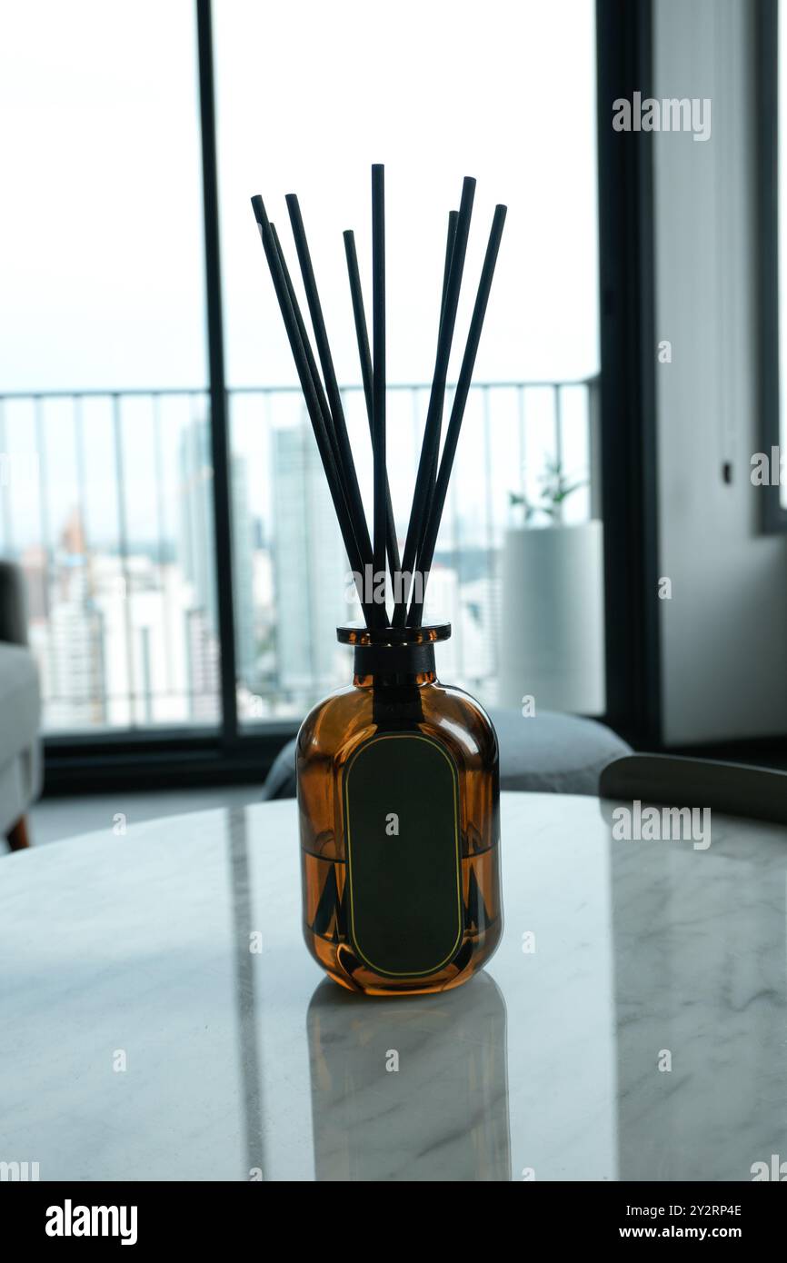 Reed diffuser on table in room Stock Photo - Alamy