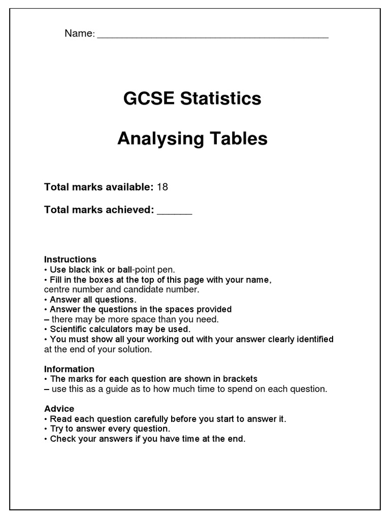 Analysing Tables Exam Questions | PDF