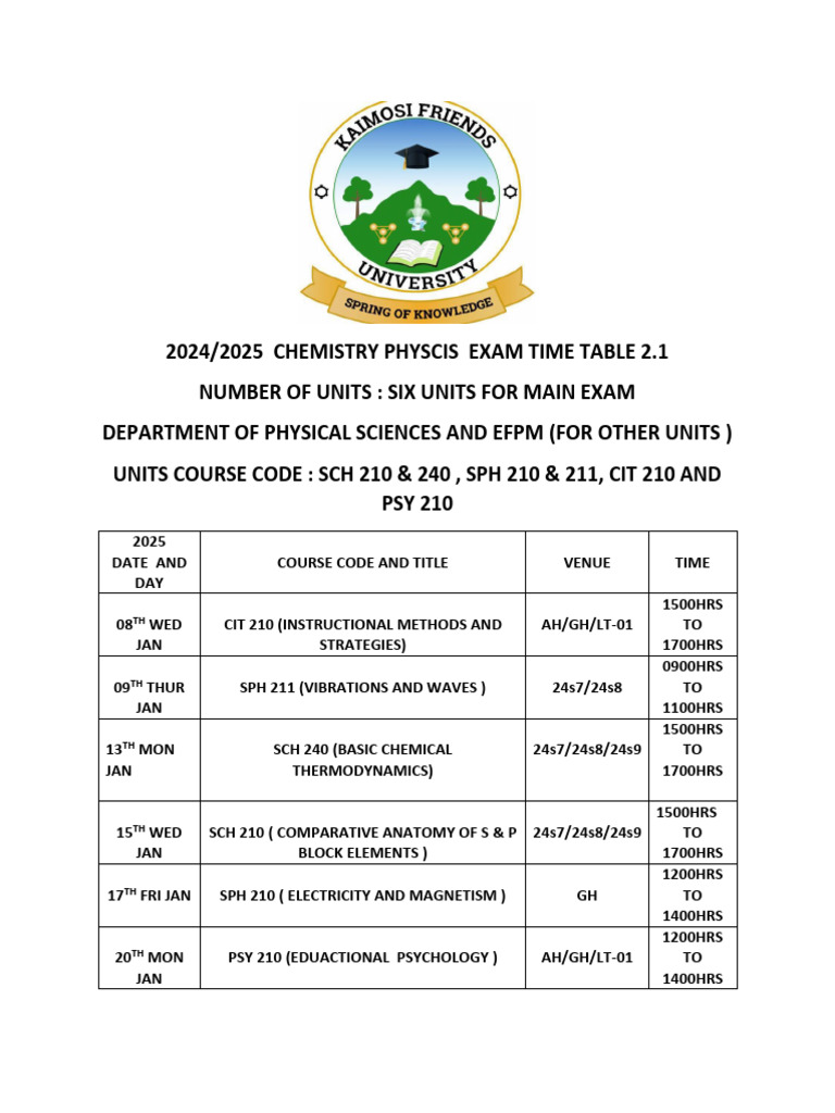 Exam Time Table | PDF