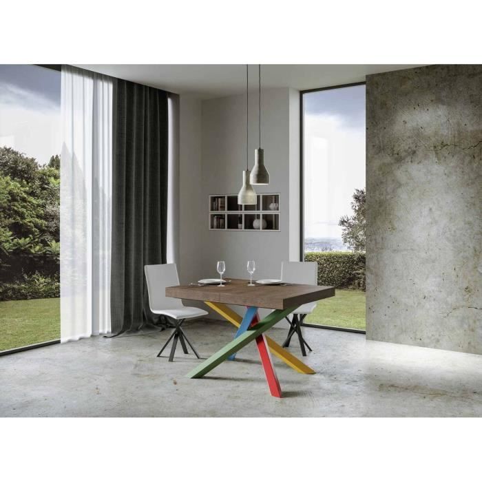 Table extensible design bois foncé et pieds entrelacés multicouleurs L ...