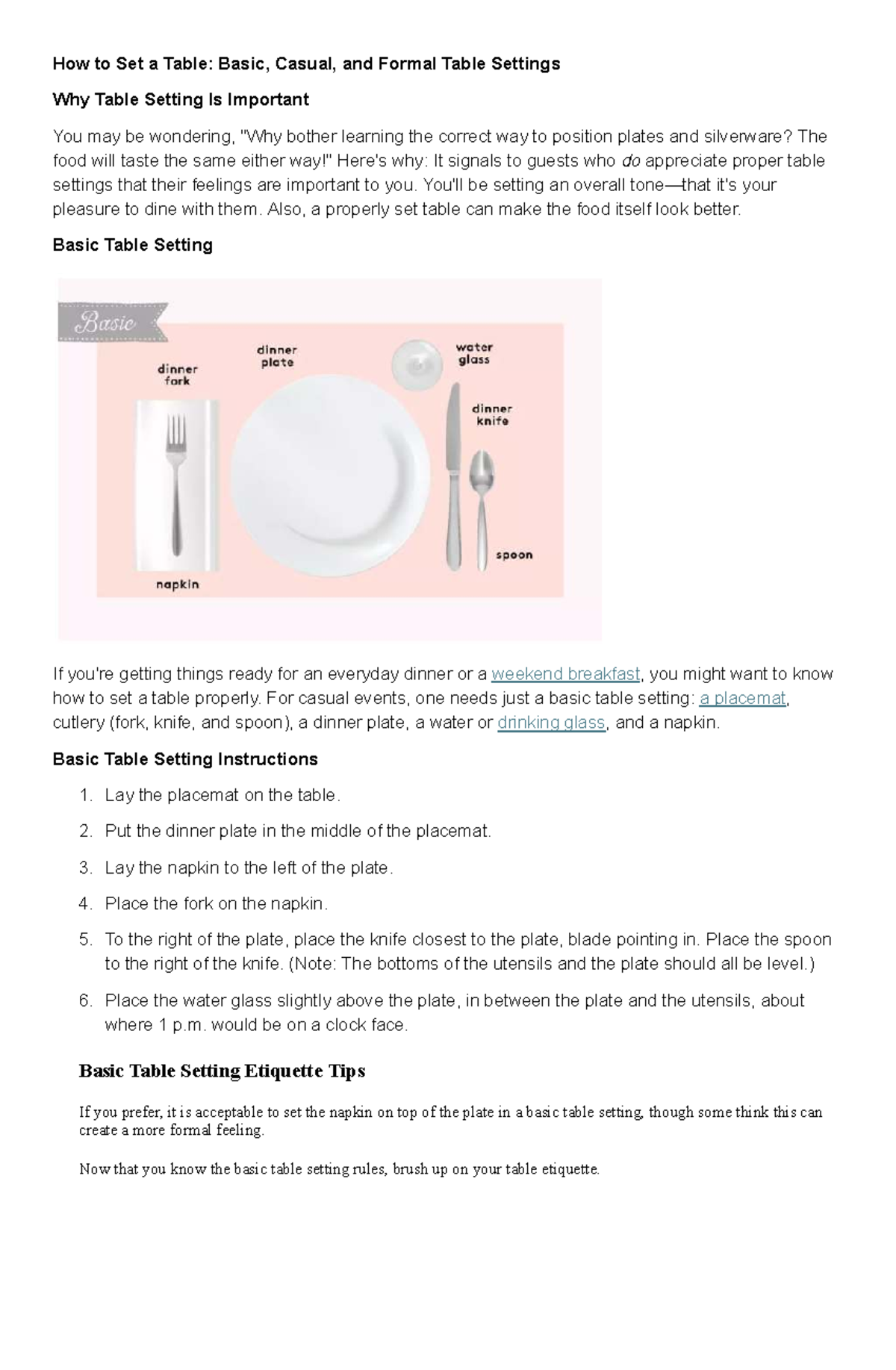 Formal and Casual Table Setting Guide