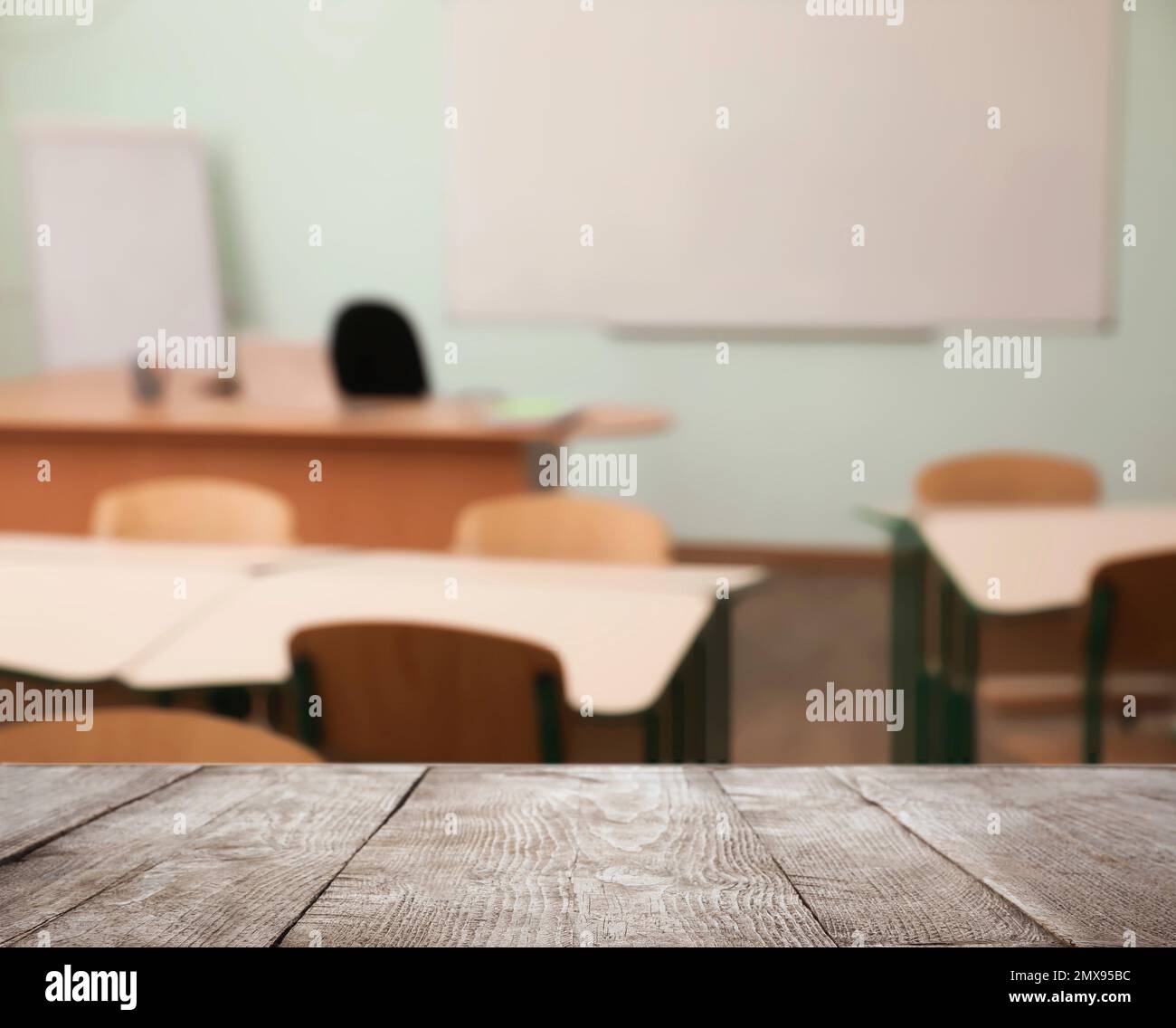 View from wooden table in empty classroom Stock Photo - Alamy