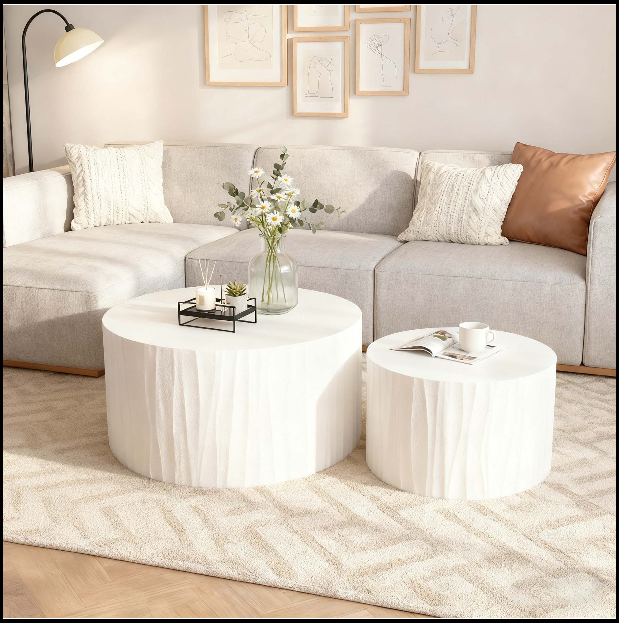 Ivy Bronx Nesting Coffee Table Set of 2, Round Wooden Tables with ...