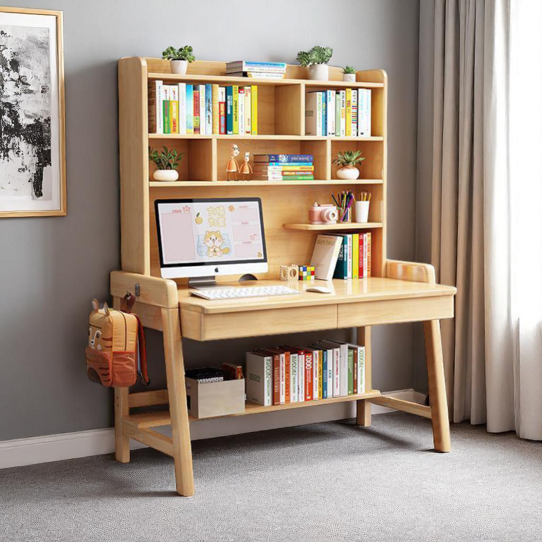 Solid Wood Study Table with Shelves-Drawers - Mr Nanyang