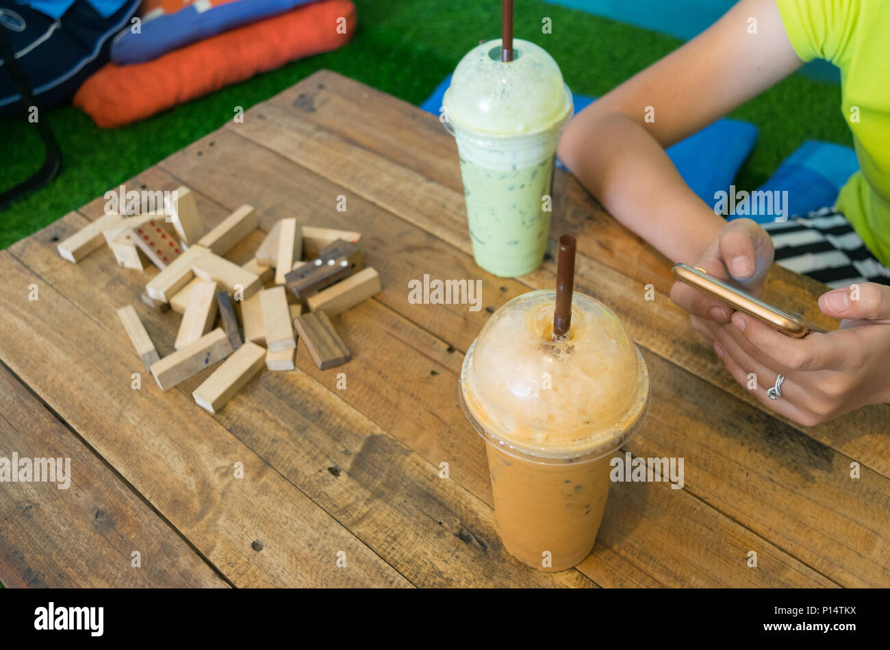 Essential oil with pink flowers on wooden table on blur fresh herbs ...