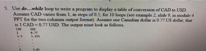 Solved 5. Use do...while loop to write a program to display | Chegg.com