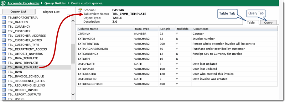 Creating a custom query from a table or view