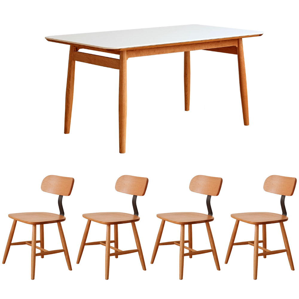 Square Wood Color Dining Table Oak Solid Wood Table Industrial with 4 ...