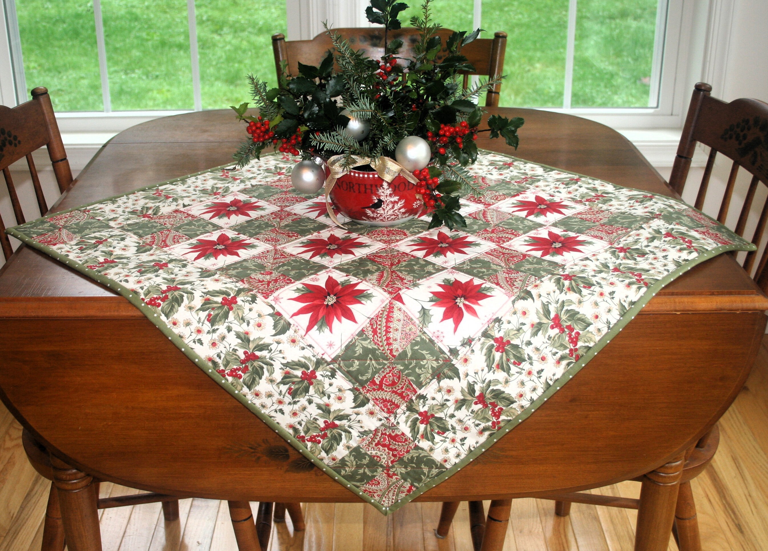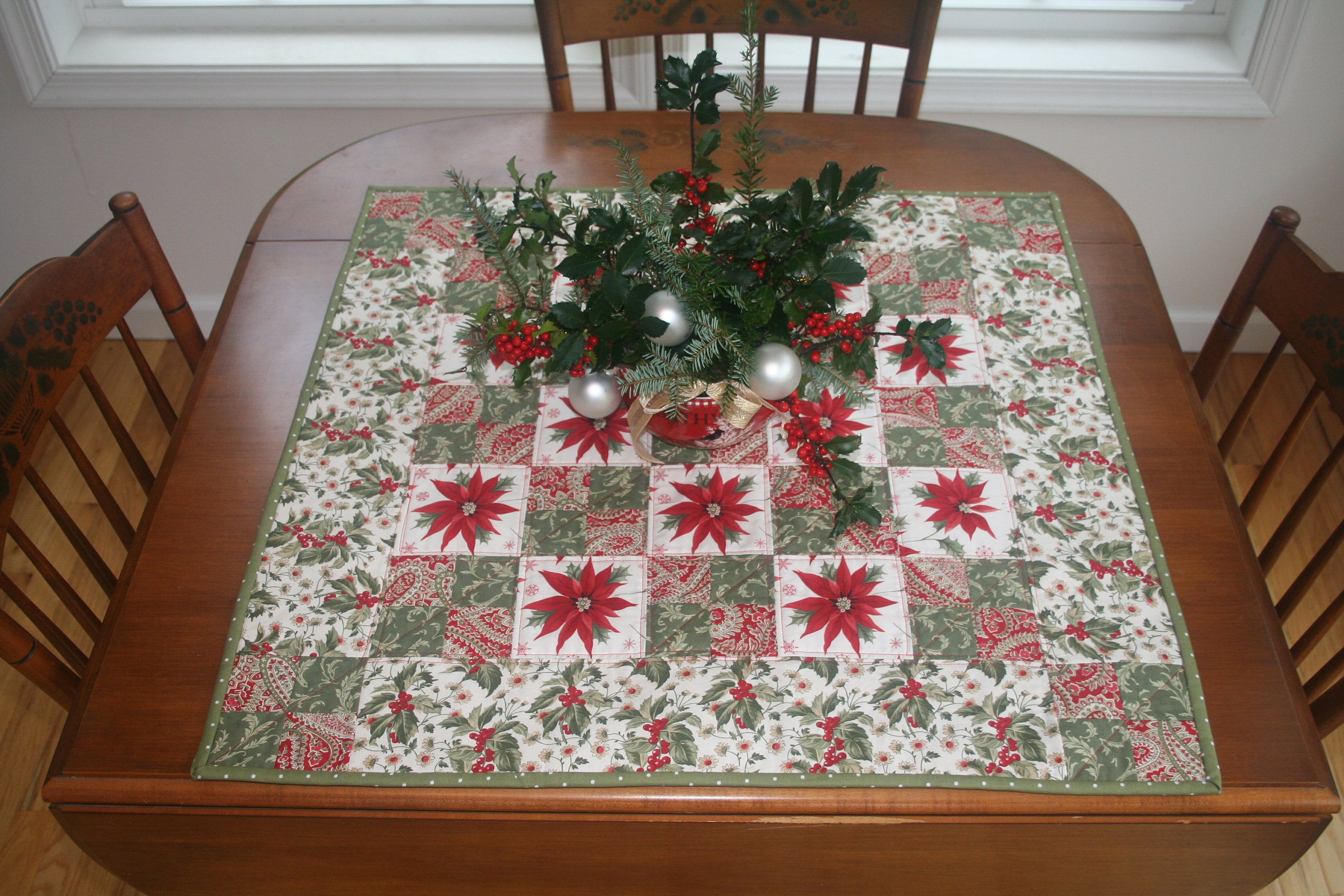 Christmas Quilted Table Topper, Handmade Quilted Holiday Table Topper ...
