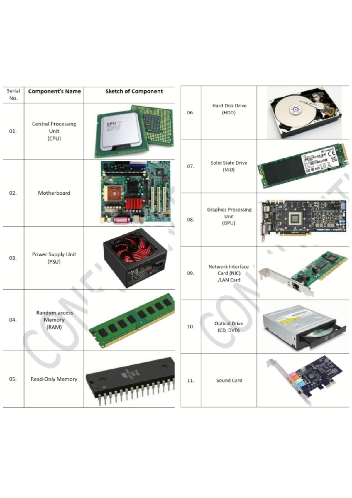 Computer Components - Serial Name Sketch of Component No. Hard Disk ...