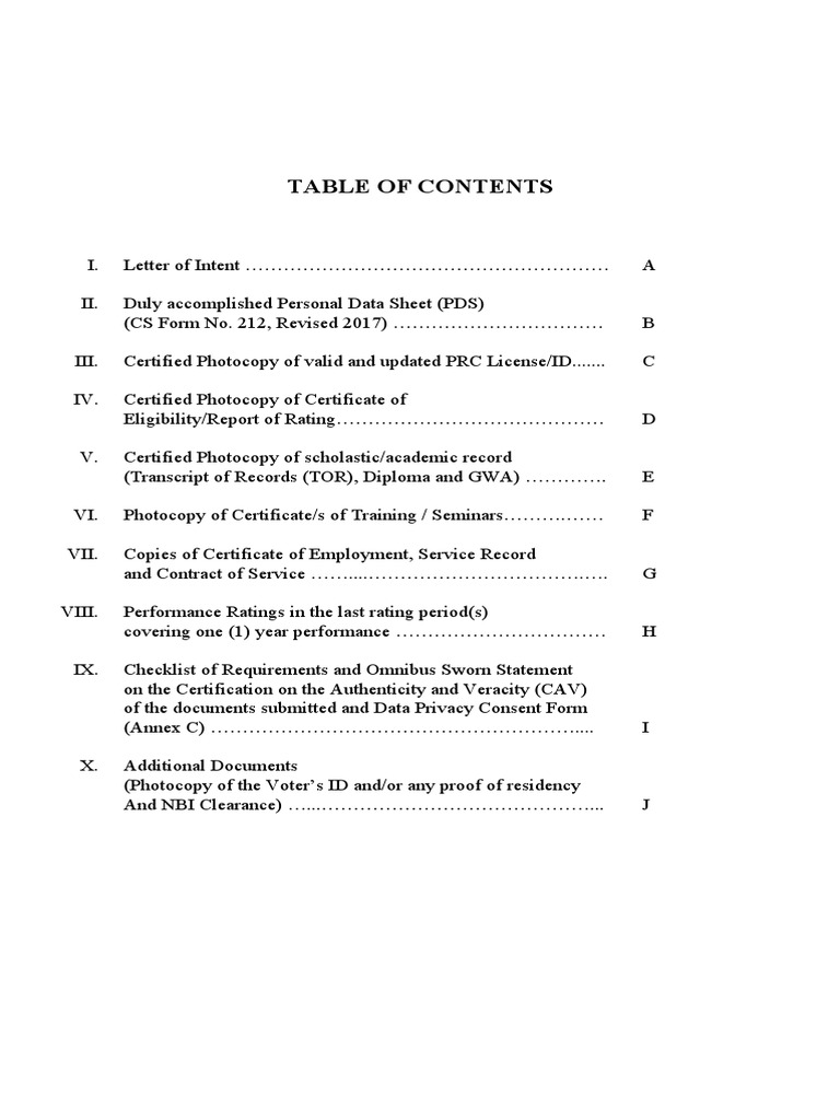 Table of Contents-For-FO1-Application CY 2024 | PDF