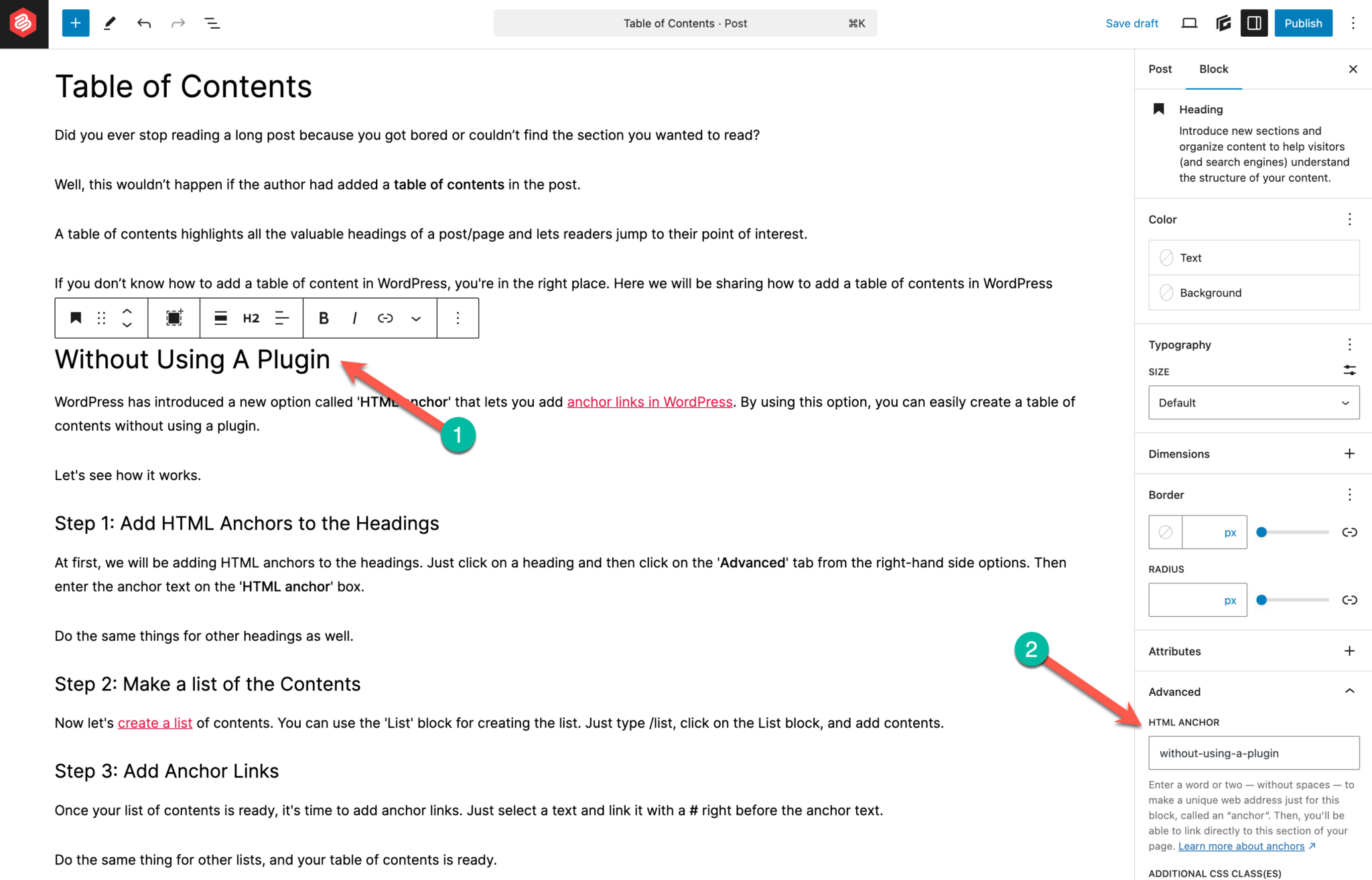 How to Add a Table of Contents in WordPress (With/out a Plugin)