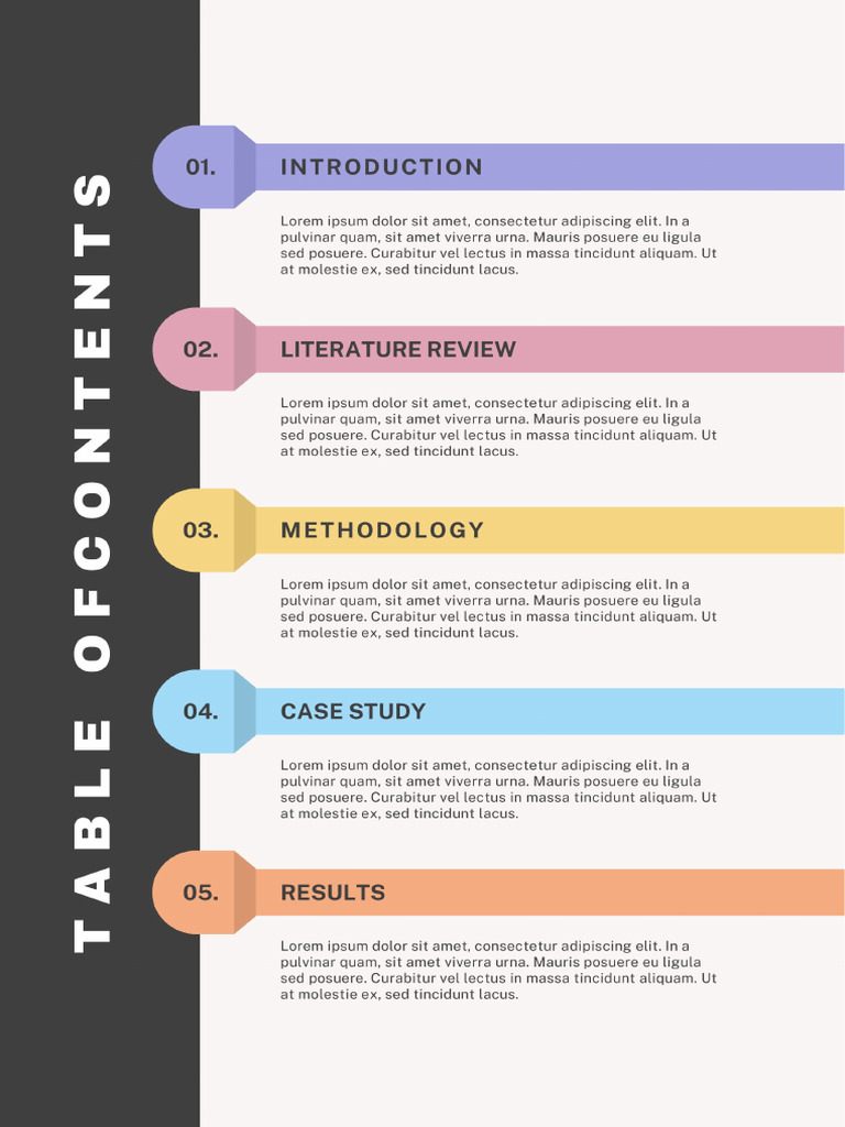 Vibrant colorful Table of Contents Template | PosterMyWall