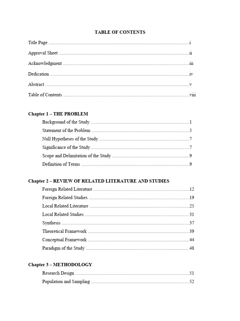Table of Contents - Types, Formats, Examples - Research Method