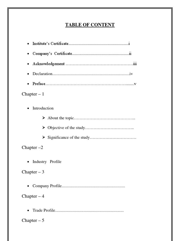 Table Of Content Template