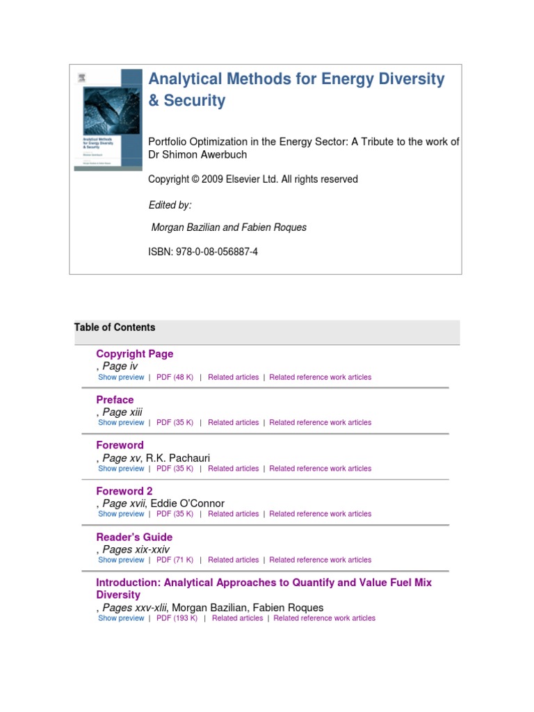 Table of Contents - Analytical Methods For Energy Diversity & Security ...