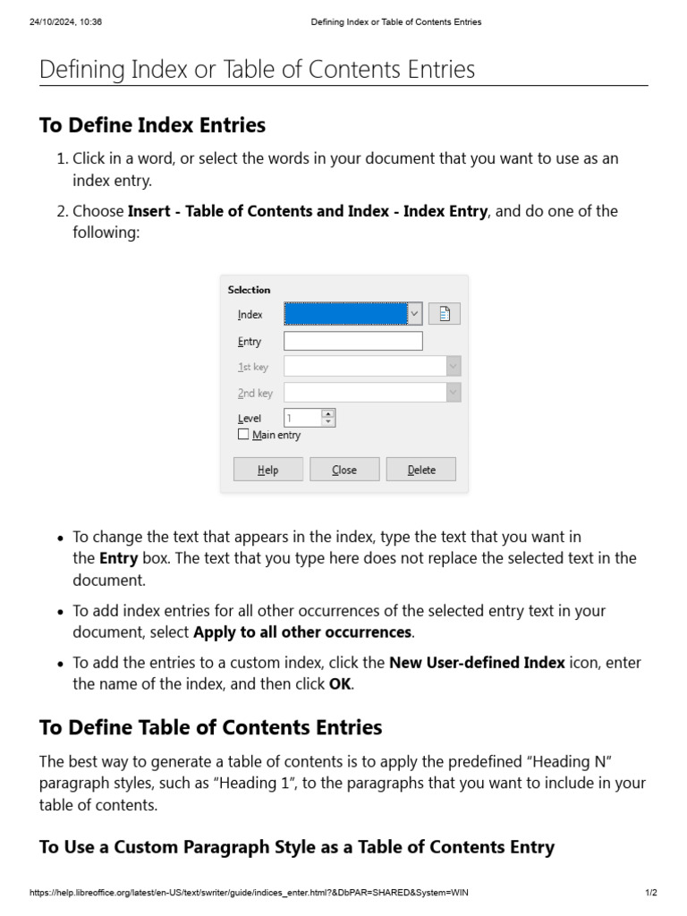 Defining Index or Table of Contents Entries | PDF