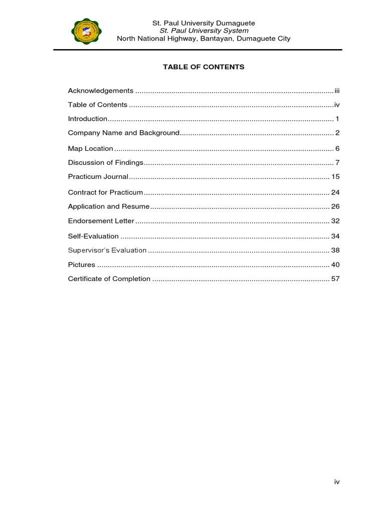 Revised Ojt Narrative Report Table of Contents | PDF | Abstract ...