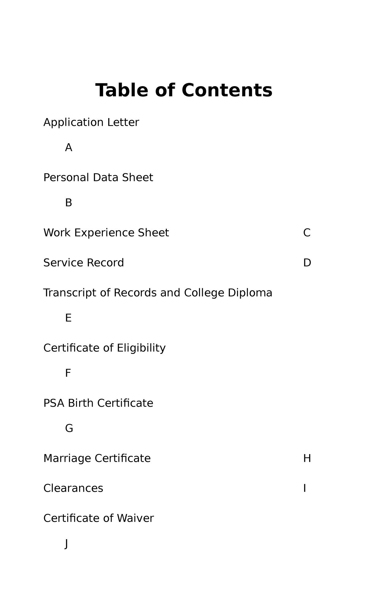 Table of Contents: Basic Documentary Requirements for HR Submission ...
