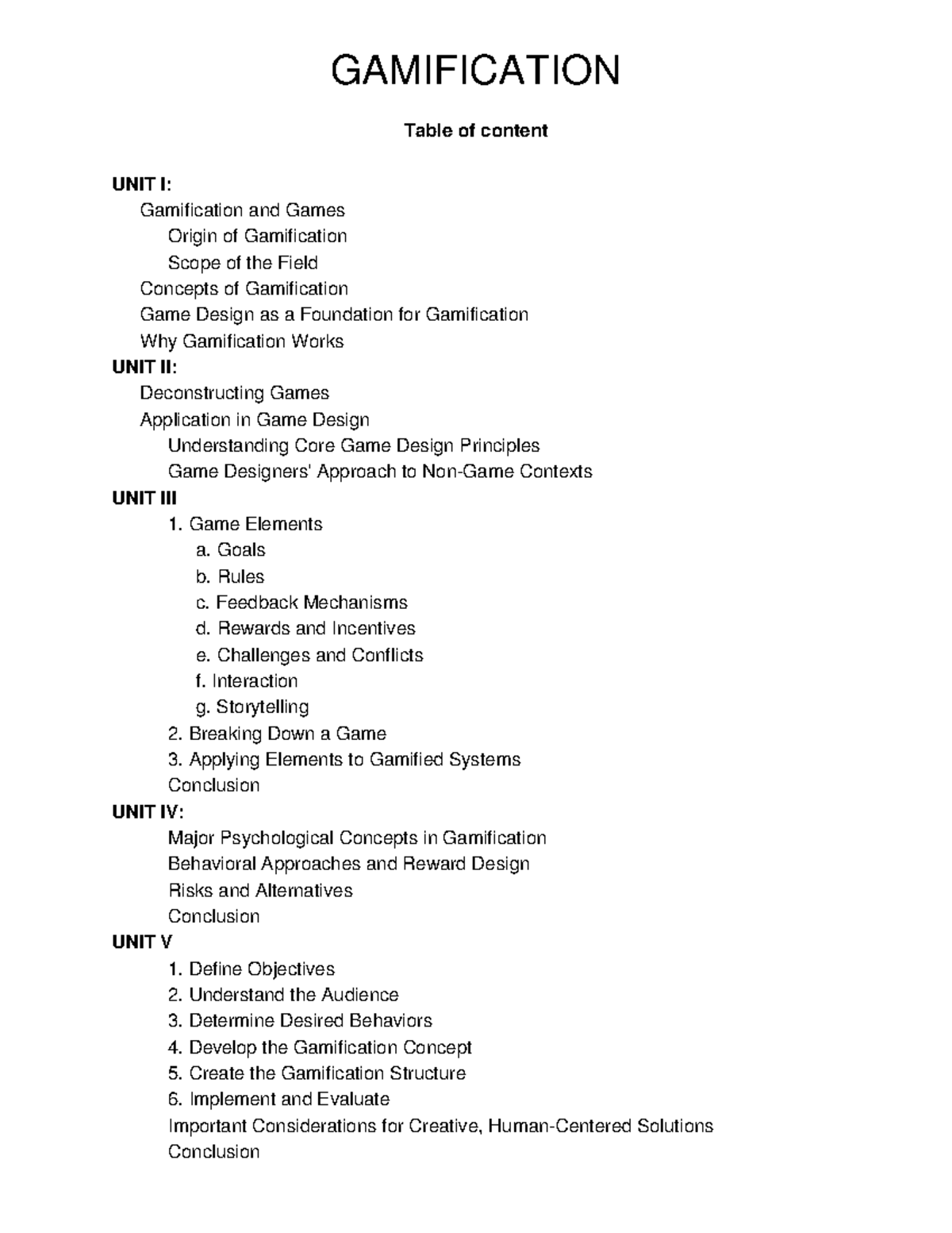 Gamification Material - GAMIFICATION Table of content UNIT I ...