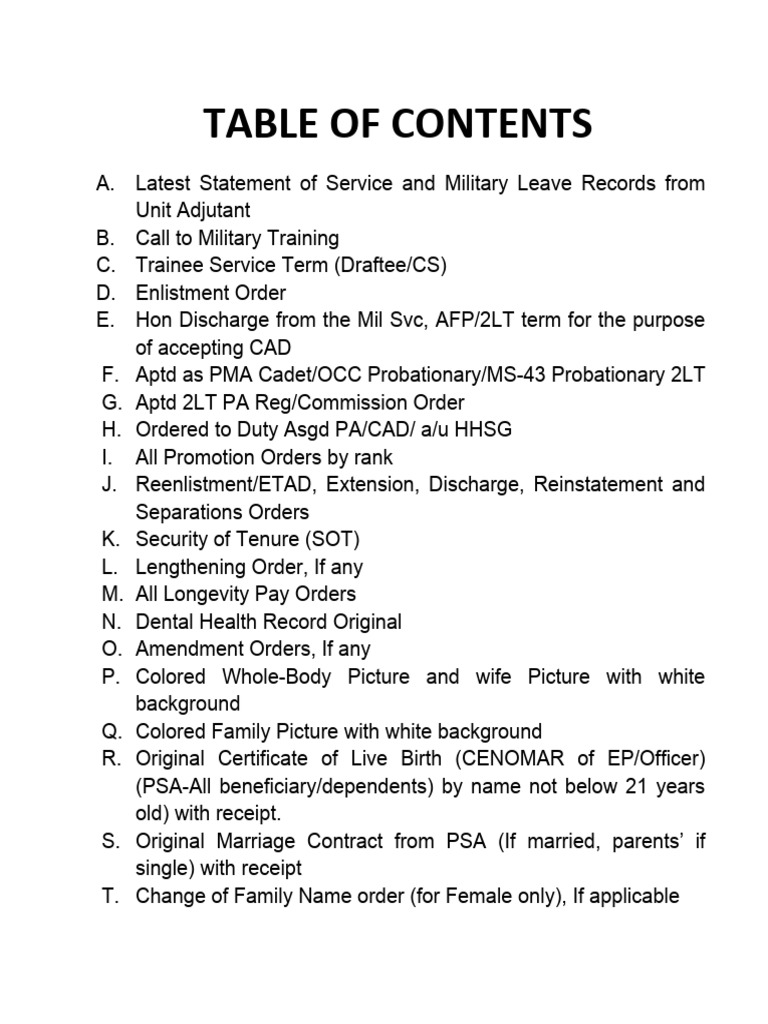 Table of Content Enlistment | PDF