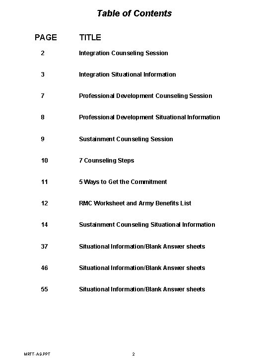 Table of Contents For MPF | PDF