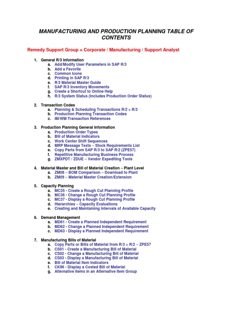 Manufacturing and Production Planning Table of Contents | PDF ...