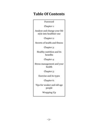 Table Of Contents For Health And Fitness One Pager Sample Example ...