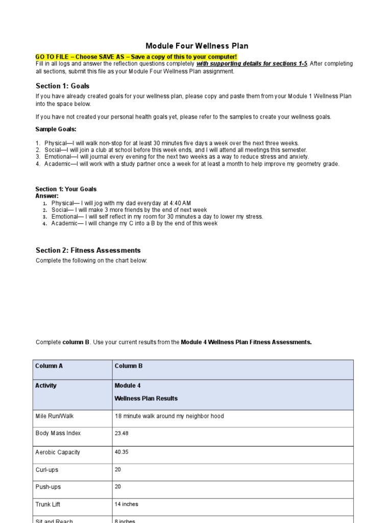 Module Four Wellness Plan | PDF | Physical Exercise | Musculoskeletal ...