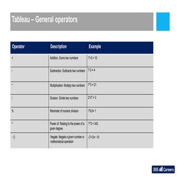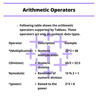 Tableau Operators | CloudDuggu