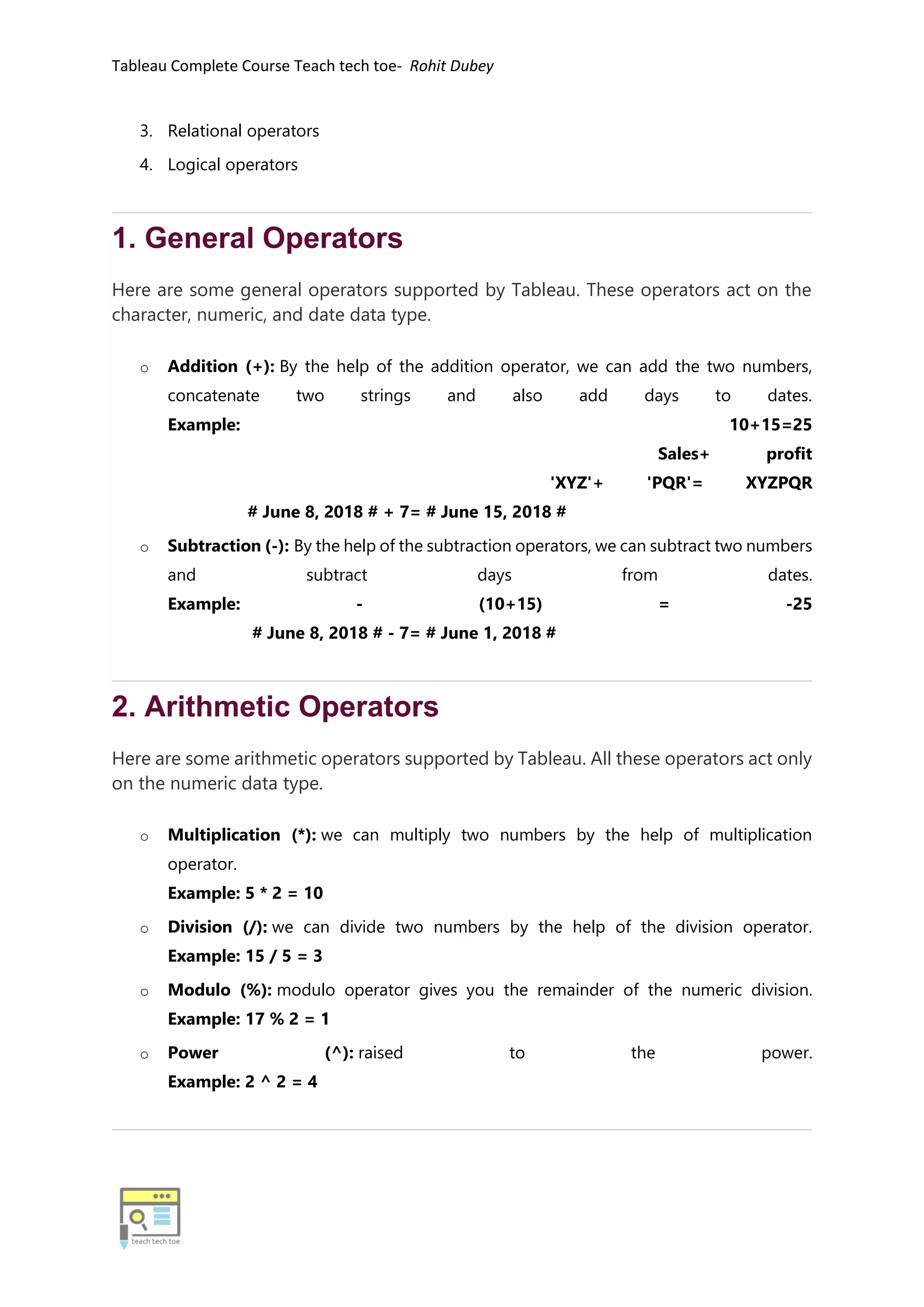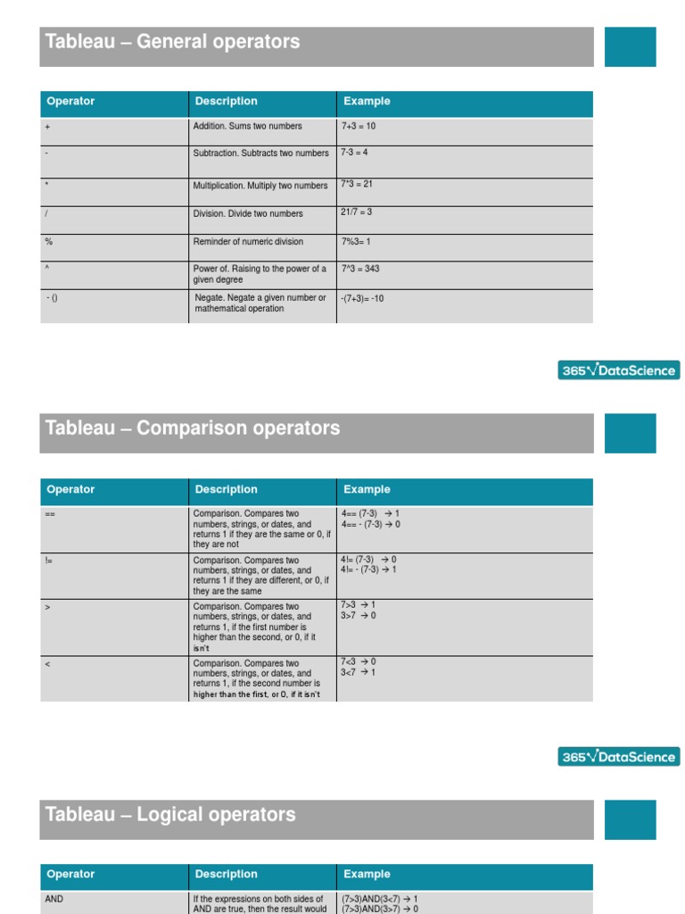 Tableau Operators Guide | PDF