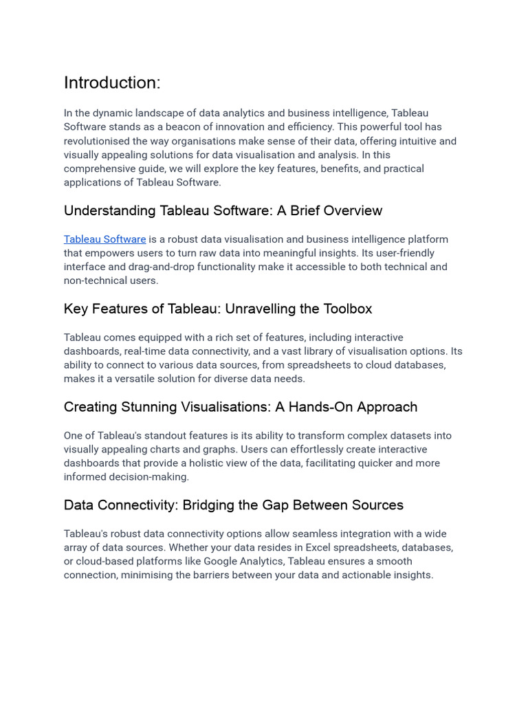 Introduction To Tableau Software | PDF | Analytics | Computing