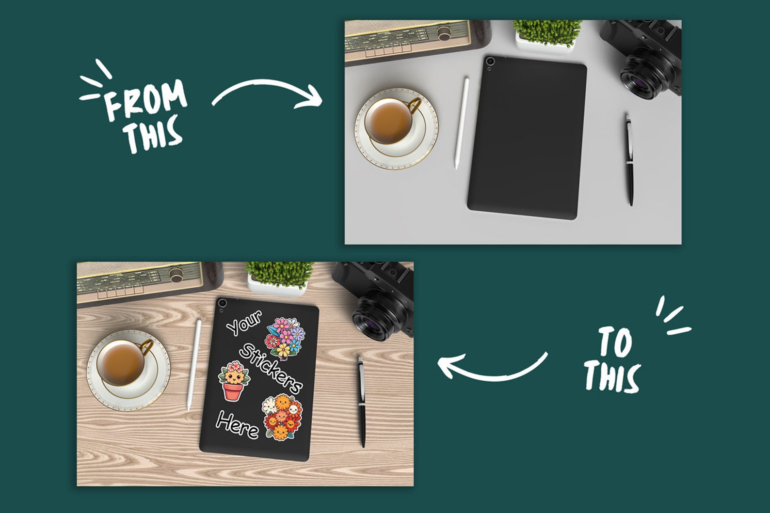 Tablet Stickers Mockup Psd and Jpg, Stickers Set Mockup for Product ...