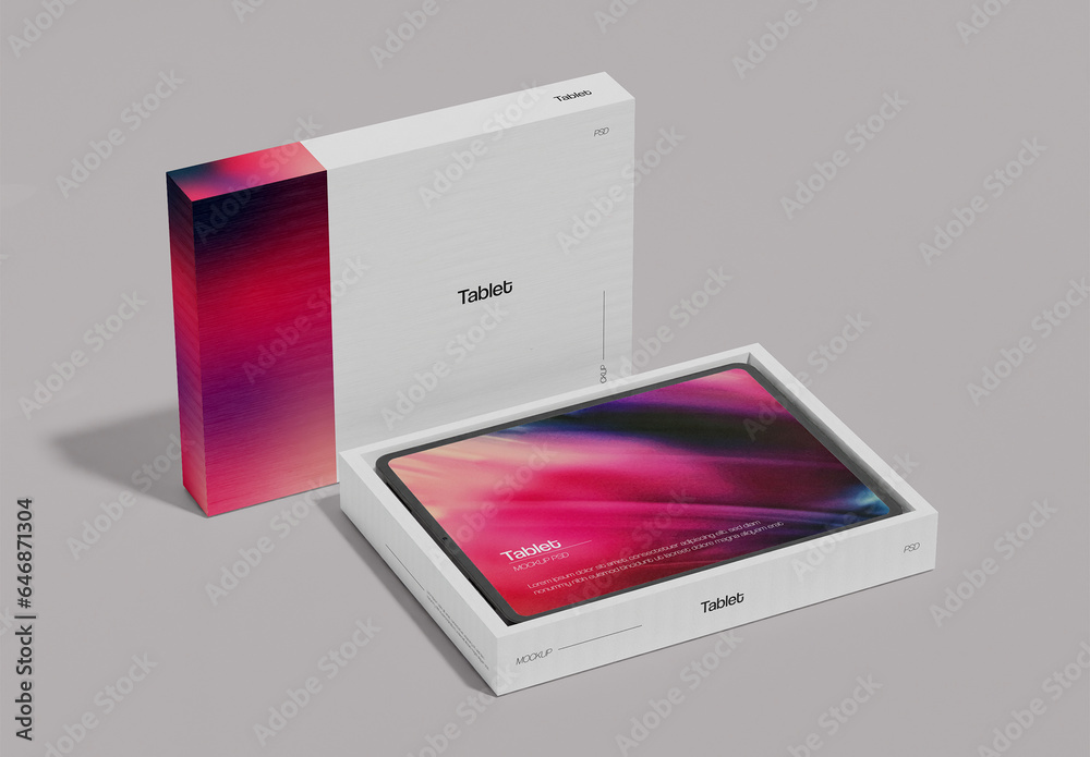 Tablet with Box Packaging Mockup Stock Template | Adobe Stock