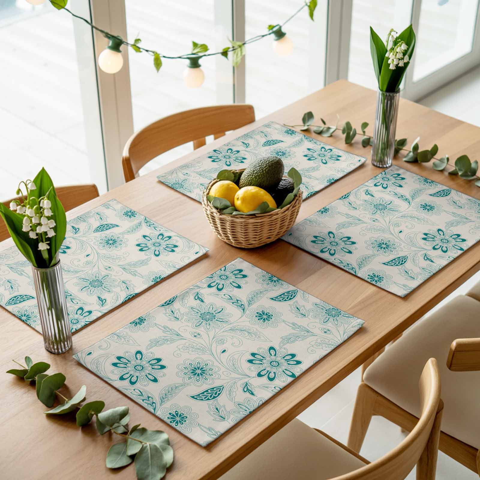Abstract Ethnic Flower Texture Placemats Set of 4,Wipeable Washable ...