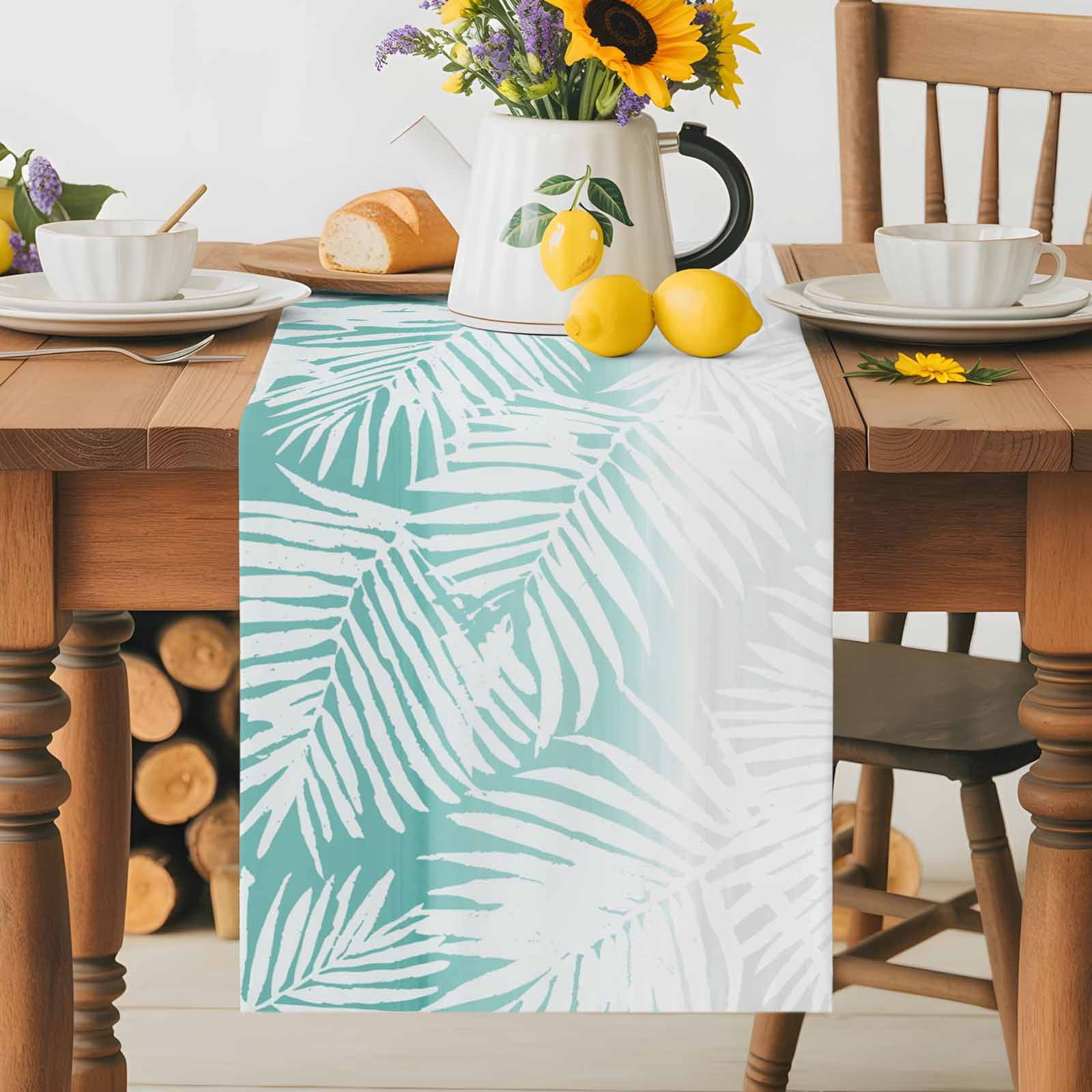Burlap Table Runner 120 Inches Long, Tropical Palm Leaves Texture Non ...
