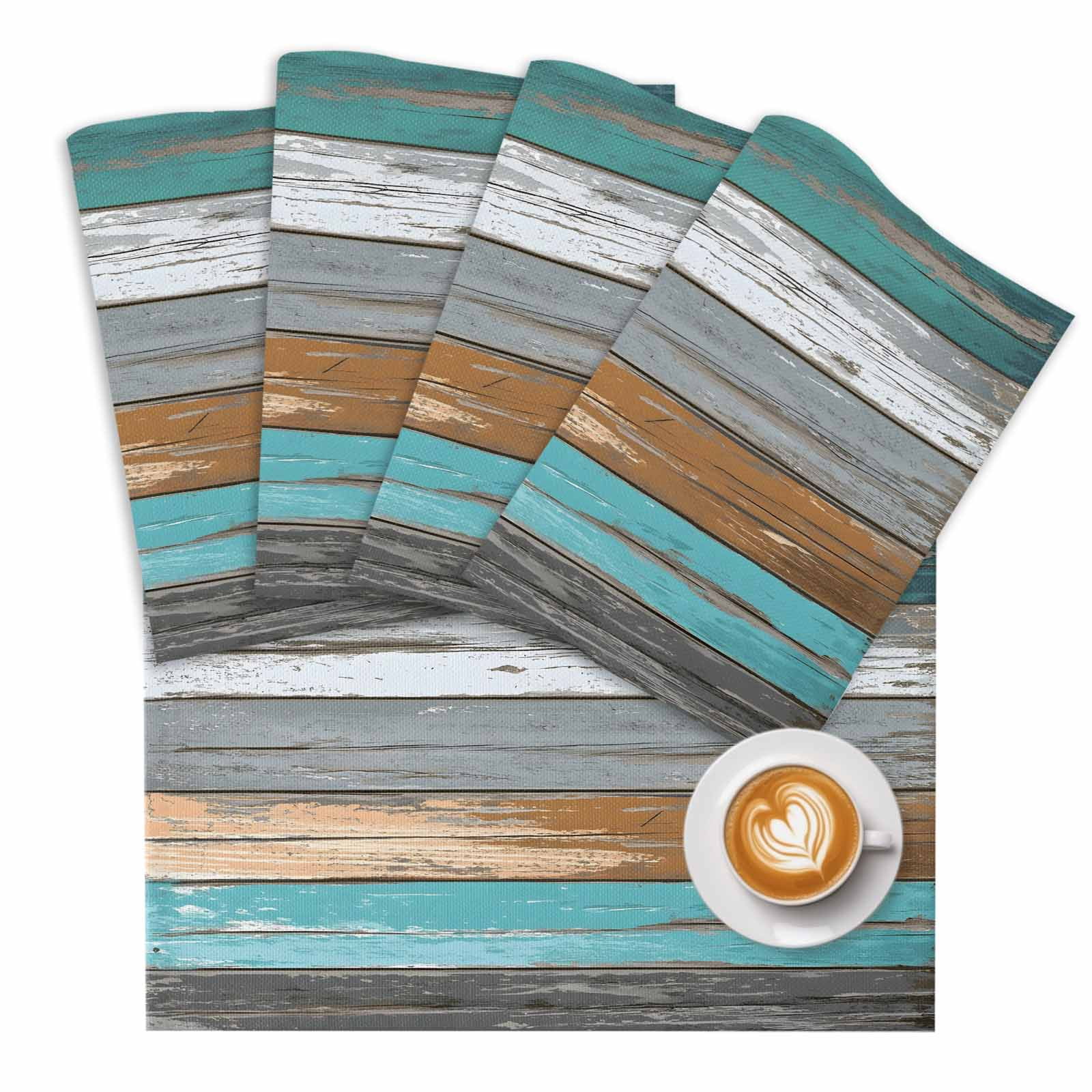 Coastal Style Placemats Set of 2 Retro Green Brown Stripe Wood Texture ...