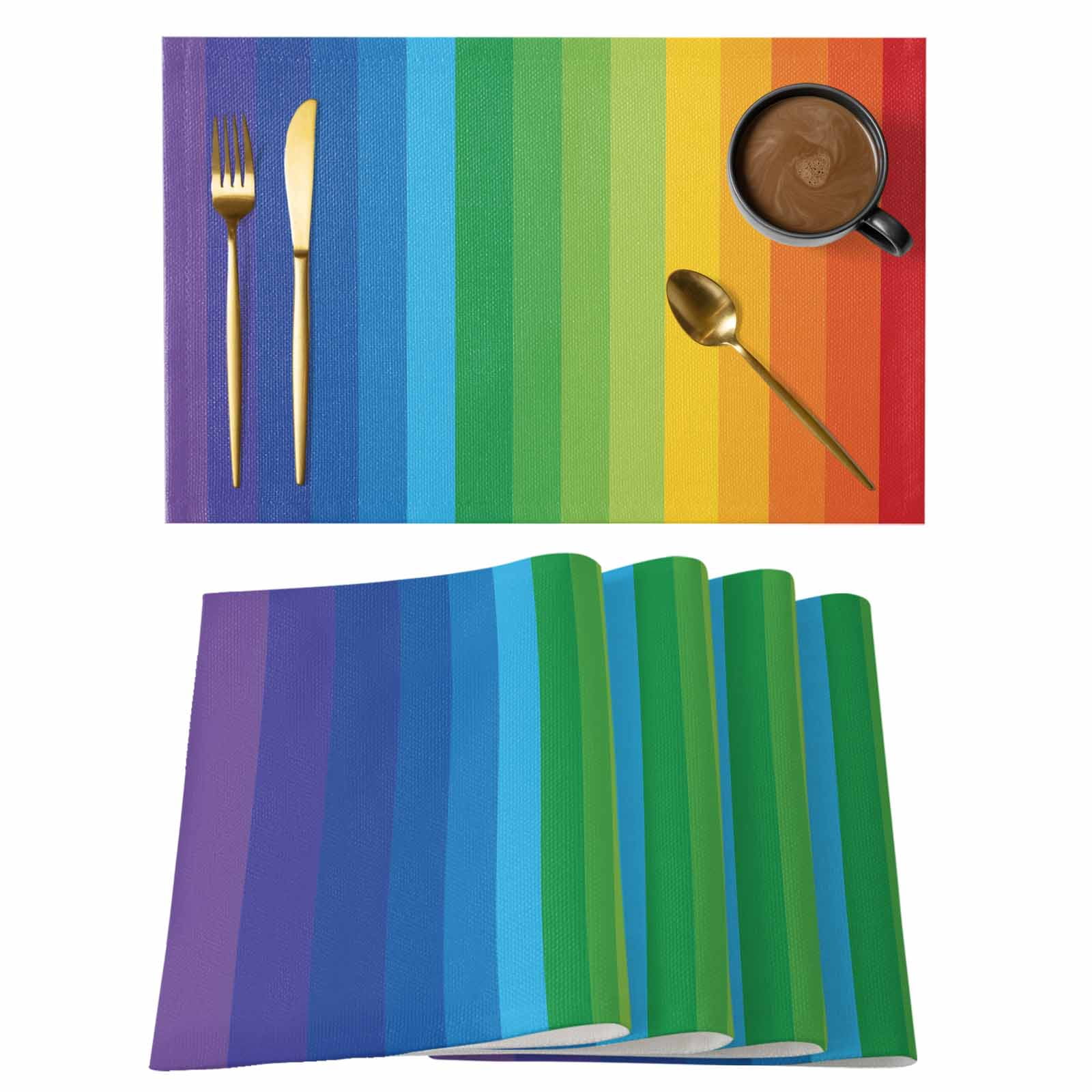 Colorful Stripes Gradient Art Placemats Set of 6,Wipeable Washable ...