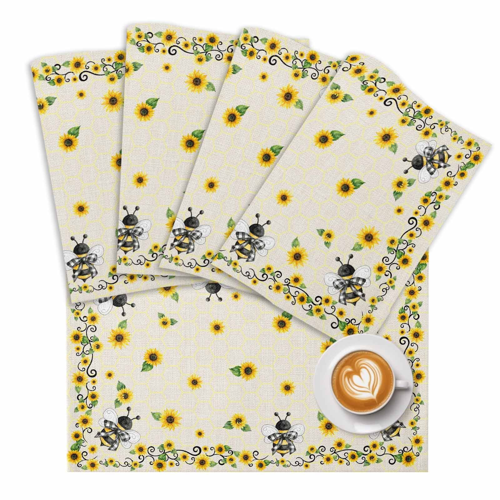 Sunflower Bee Placemats Set of 2 Country Summer Floral Bee Nest Linen ...