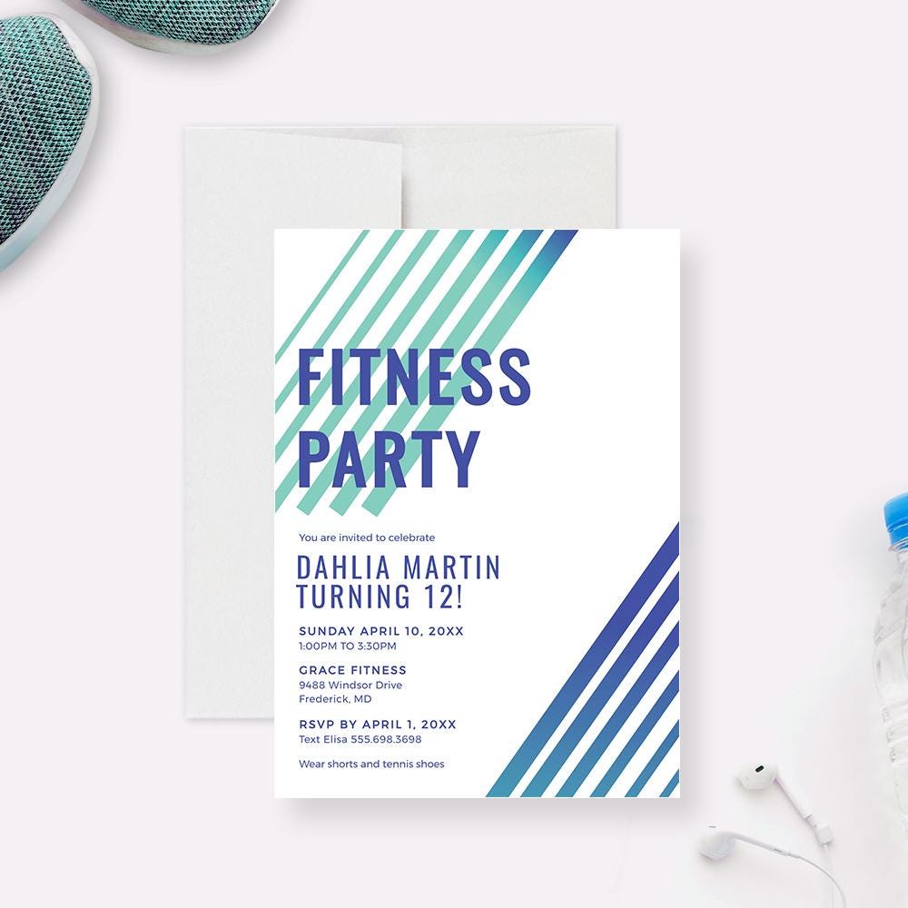 Fitness Party Invitation Editable Template, Workout Party Invites for