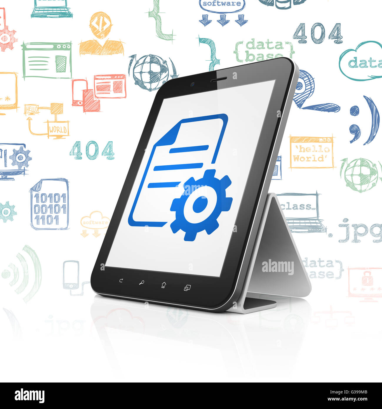 Software concept: Tablet Computer with Gear on display Stock Photo - Alamy