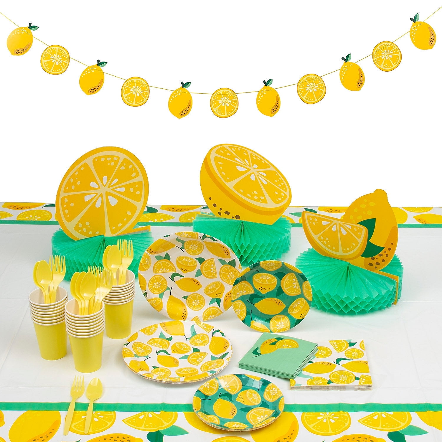93 Piece Lemon Party Disposable Tableware Supply Kit for 8 Guests ...