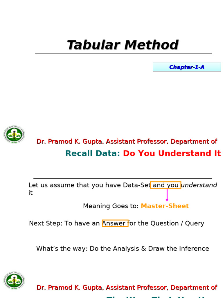 Tabular Methods Statistical Tables 1 1 Tabular Methods