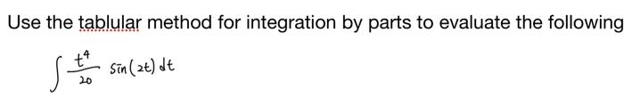 Solved Integration by Parts/Tabular Method Use Integration | Chegg.com