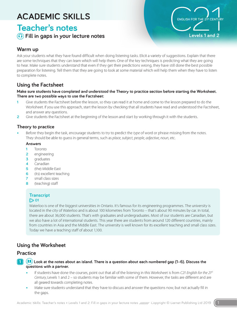 C21 L1+2 Academic Skills Teachers Notes Fill in Gaps in Your Lecture ...