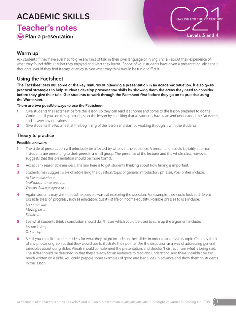 C21 L3+4 Academic Skills Teachers Notes Plan A Presentation | PDF ...