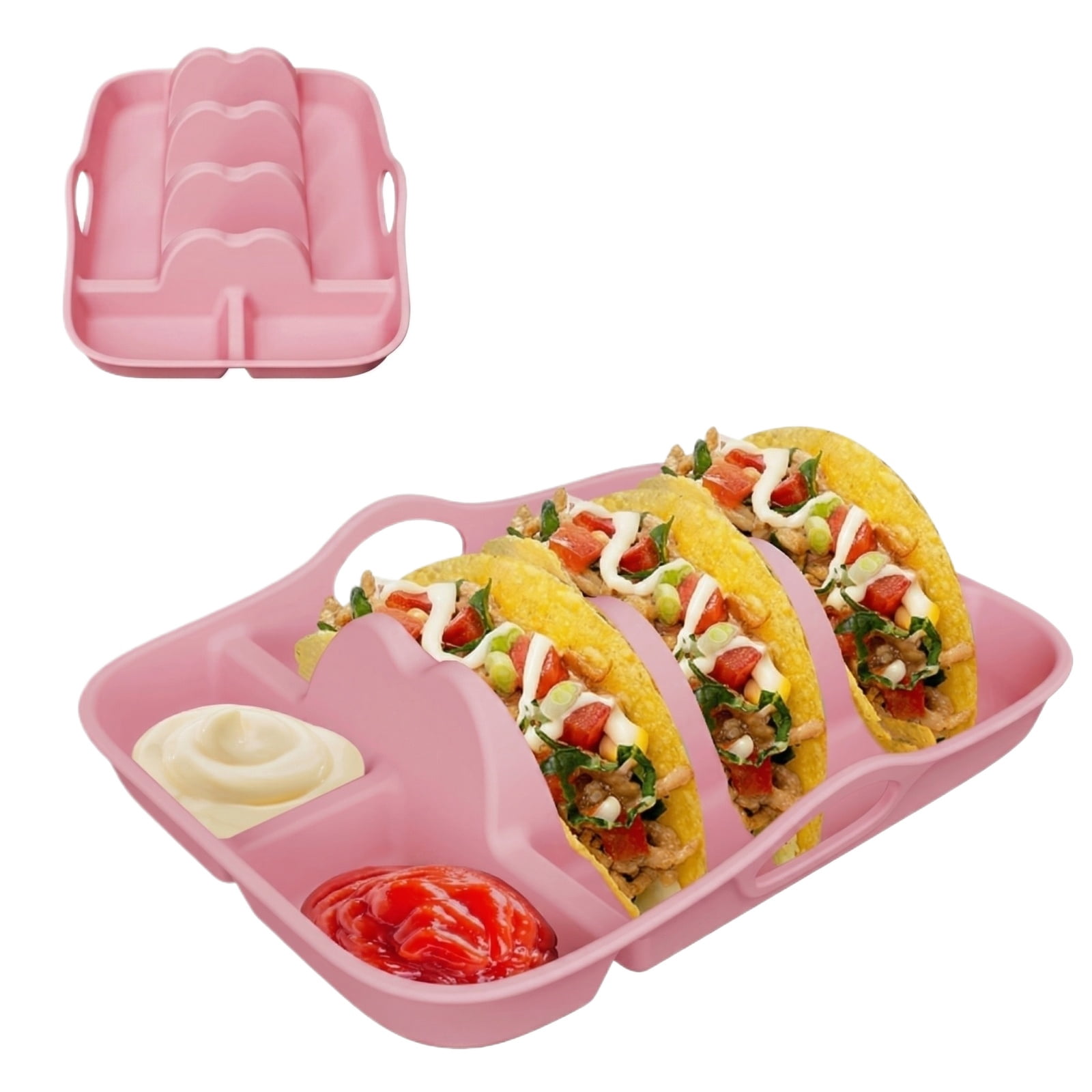 Silicone Taco Holder, Taco Plates with 2 Built-in Dip Bowls, Reusable ...
