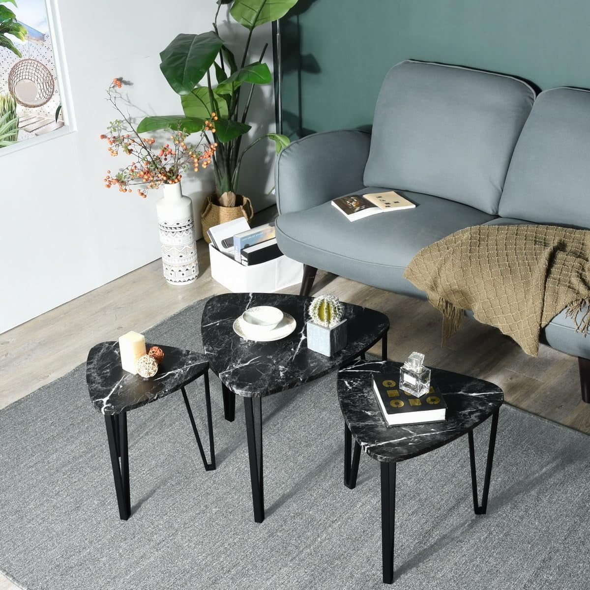 Triangle 3-Piece Nesting Coffee Tables with Metal Frame, Modern Simple ...